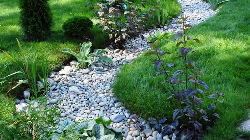 Стильная деталь на участке: сухой ручей