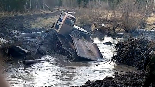 Трелевочник тонет в речке ТДТ-55 ТТ-4 в работе