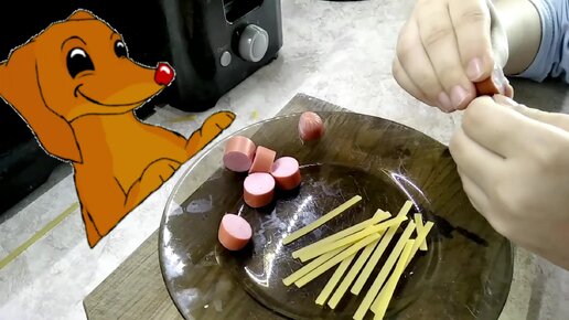 Быстрый завтрак -цветочки из спагетти и сосиски.