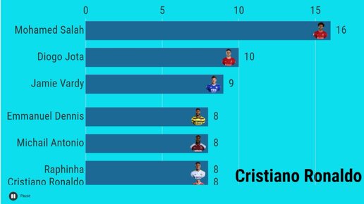 ТОП 10 бомбардиров АПЛ 2021-22 на 23.01.2022