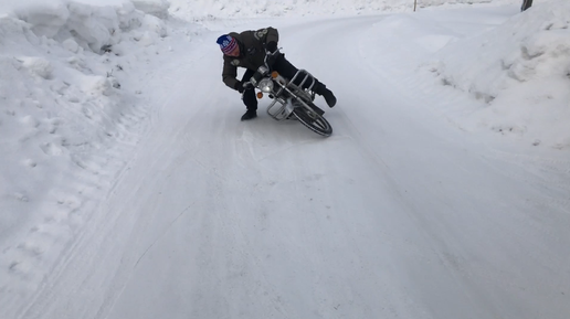 Катаемся на мопеде Альфа по снегу зимой