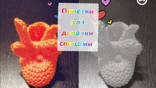 Очень простенькие пинеточки-сандалики для девчулек на двух спицах платочной вязкой. Размер по подошве 10 см