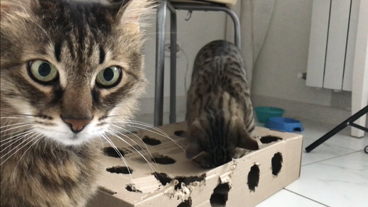 Как заставить кота добывать еду и медленнее есть. Игра и кормление