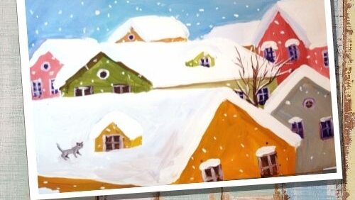 Рисуем зиму. Крыши домов