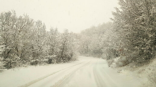 Непопулярная у туристов, но очень красивая дорога к морю с трассы «Таврида». Пробираемся сквозь снежную завесу...