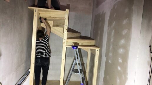 Лестница на 180 градусов с забежными ступенями и подступенками