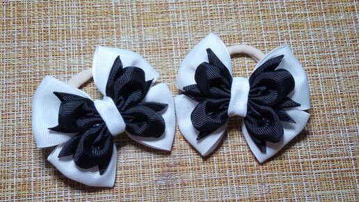 Бантики из лент. Бантики своими руками.. Резинки. Заколки. Украшения. Для волос. Для девочек. Из репсовой ленты. 4 см. Школьные.