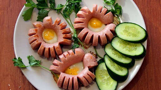 Делаем завтрак из сосисок и перепелиных яиц