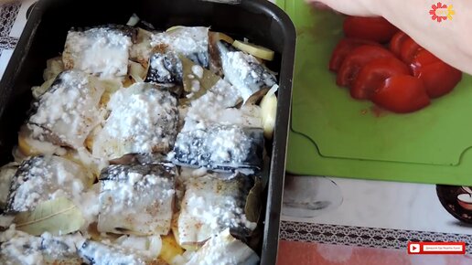 Запеченная скумбрия с картофелем и помидором под соусом и сыром Домашняя еда Кухня Рецепты