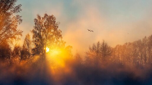 Красивый закат. Зима на незамерзающем озере