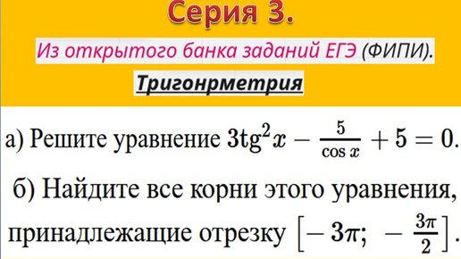 Серия 3. Из открытого банка ЕГЭ ( ФИПИ). ЕГЭ профиль. Тригонометрия.