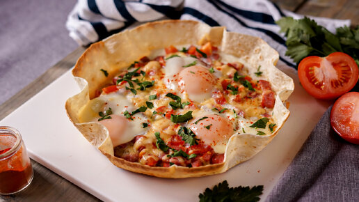 Завтрак для ленивых. Яичница в лаваше на сковороде