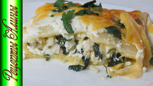 Запечённые блины с шпинатом , з сыром и ветчиной .Рецепты Алины.