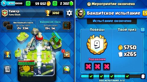 40К+ золота ! ПРОШЕЛ ИСПЫТАНИЕ БАНДИТКИ НА 9 ПОБЕД !CLASH ROYALE