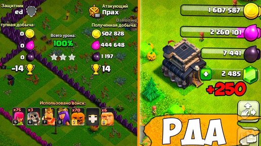 РДА! ХАЛЯВНЫЕ 250ГЕМОВ! ФАРМ МИКСОМ БЬЮ ТРЕШКИ! CLASH OF CLANS
