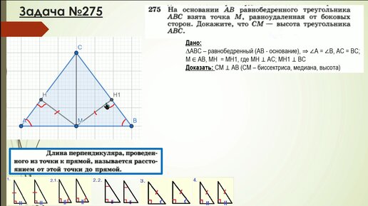 Далее: Задачи №276, 277 Атанасян. Геометрия 7 класс. Расстояние от точки до прямой