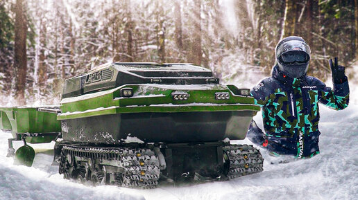 Вездеход мото буксировщик Ростин, испытания в глубоком снегу!