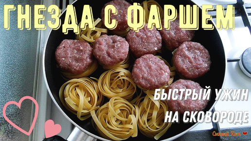 Гнезда с фаршем. Быстрый ужин на сковороде