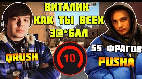 QRUSH ОРЕТ НА БЕДНОГО ВИТАЛИКА РОВНО 21 МИНУТУ 44 СЕКУНДЫ | PUSHA ДРОПНУЛ 55 ФРАГОВ ЗА КАТКУ ???