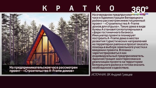 На предпринимательском часе рассмотрен проект – «Строительство A-Frame домов для отдыха»
