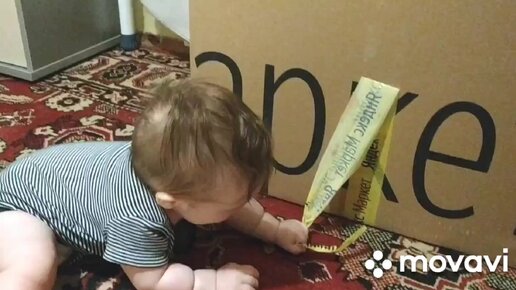 Восьмимесячный ребенок открывает большую посылку