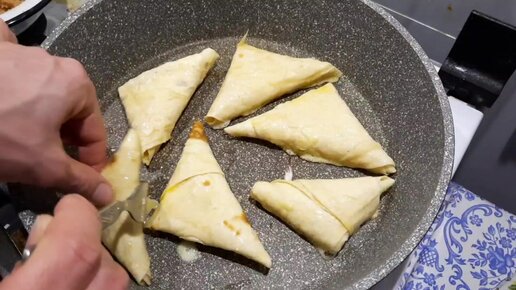 Простой и полезный перекус. Треугольники из лаваша с сыром и творогом.