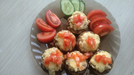Запечённые шампиньоны с сыром и томатами,очень вкусно и просто!