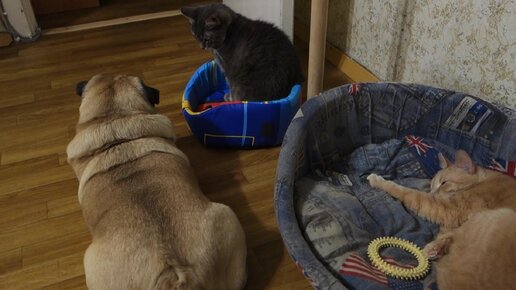 Мопс ждет свою очередь полежать на диване