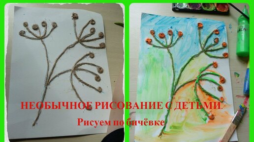 Необычное рисование с детьми. Рисуем по бичёвке.