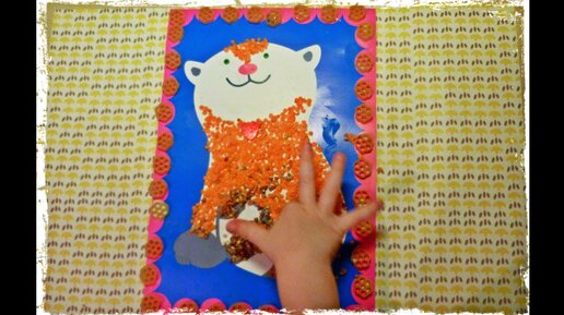 Котик.Поделка из круп с малышами.