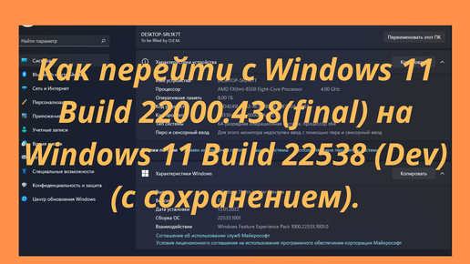 Как перейти с Windows 11 Build 22000.438 (final) на Windows 11 Build 22538 (Dev) (с сохранением).