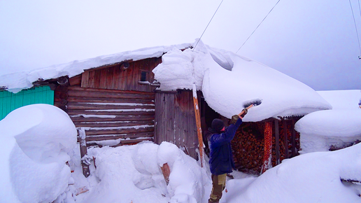 Живу в деревне. Сходил в магазин. Опасный снег на крыше.