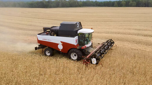 Зерноуборочные комбайны ACROS на уборке урожая сьемка с квадрокоптера. Наслаждайтесь панорамными видами хлебных полей с высоты нашего дрона