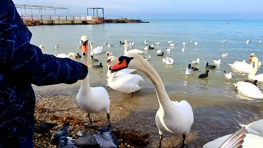 #АНАПА ЛЕБЕДИНЫЕ РАЗБОРКИ НА ПЛЯЖЕ ВЫСОКИЙ БЕРЕГ
