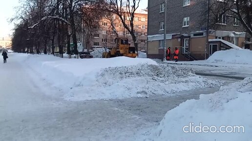 снегоуборочная техника трактора и камазы грузят и вывозят снег чистят улицу. проспект октября 2022