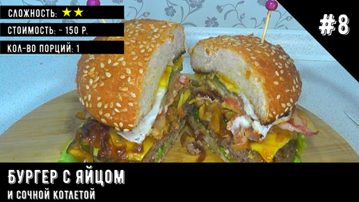 Сочный бургер с яйцом. Секрет в карамелизованном луке и грибах!