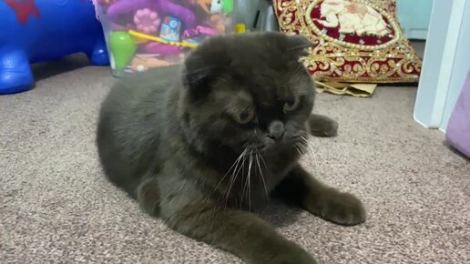 Шотландский вислоухий кот: Как играет, ногти не выпускает