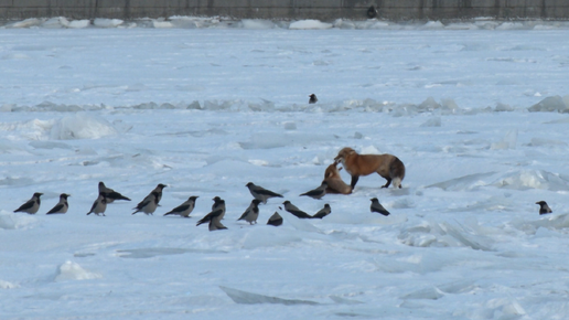 Влюбленная пара лисиц отдыхала на замерзшей Неве
