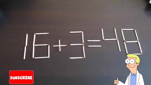 Логическая головоломка из спичек 16+3=48 Перемести 1 спичку чтобы сделать равенство верным