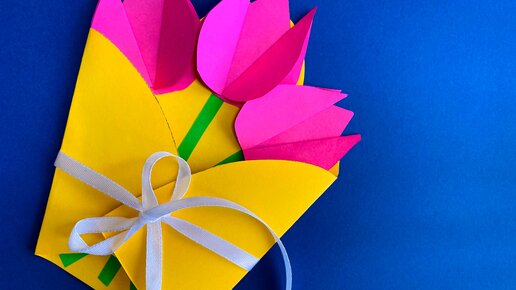 Простая открытка из цветной бумаги к 8 марта для детского сада
