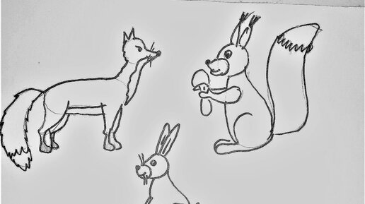 Как нарисовать лису, зайца, белку. Простые схемы рисования