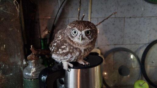 Совёнок Лучик отжал у кота балкончик, у меня чайник, у ящерок разметал тряпочку. Утро совы удалось