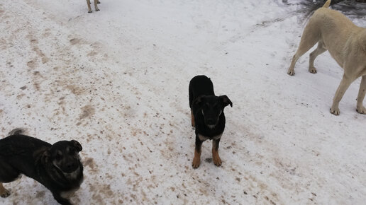 Накормил гаражных собак печеньем. Жизнь бездомных собак.