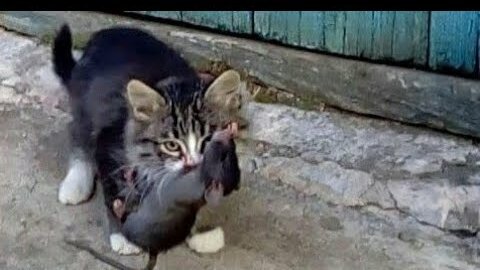 КРЫСОЛОВ КОТЁНОК ЛОВИТ КРЫСУ. Мгновенная реакция котёнка.
