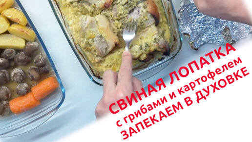Свиная лопатка с грибами и картофелем. Запекаем в духовке