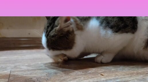 Уличный кот ест хлебушек с сыром