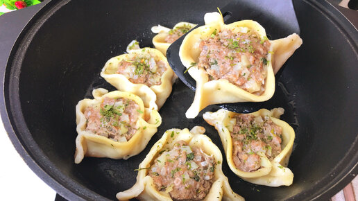 Без пароварки и мантоварки, рецепт горячего блюда на сковороде. Мясные лодочки