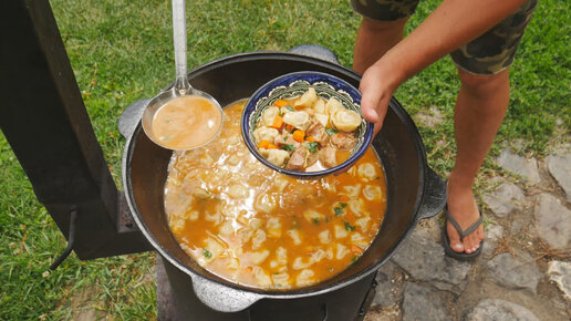 Показываю как приготовить шурпу с пельменями по-узбекски в казане на костре(делюсь рецептом)