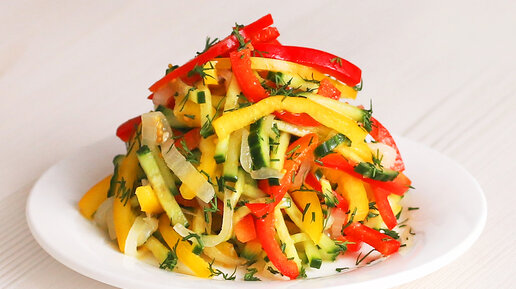 Овощной салат с болгарским перцем с необычной заправкой. Делюсь рецептом.