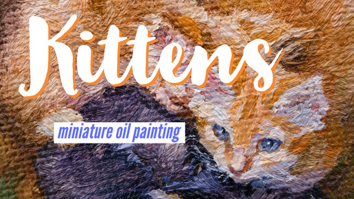 Котята на мини холсте - процесс рисования масляными красками | Kittens miniature oil canvas painting
